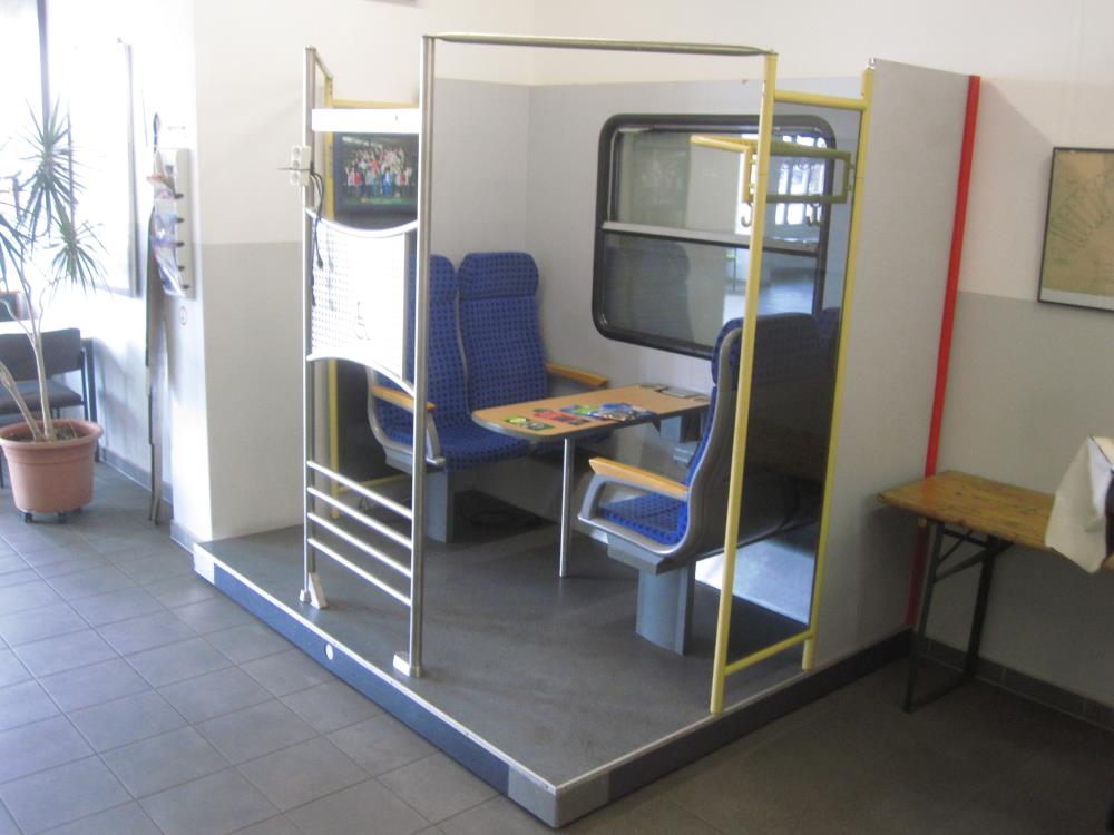 Im Durchgang zu Lokschuppen steht ein nachgebildetes Reisezugwagenabteil. Dieses wurde für Messezwecke vom benachbarten Ausbesserungswerk der DB AG hergestellt. Die Einrichtungsgegenstände sind im Design der Nahverkehrswagen der beginnenden 2000er Jahre gehalten.