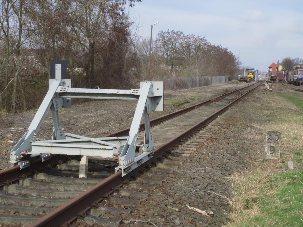 Das Gleis im Vordergrund war früher das Streckengleis aus Richtung Magdeburg. Hier fuhren die Züge in den Bahnhof Wittenberge ein, der weiter hinten im Bild liegt. An der rechten Seite im Bildhintergrund ist unser Museumsstellwerk WM zu erkennen, von wo aus auch die Weiche im Gleis gestellt wurde. Heute wird das Gleis gelegentlich für Führerstandsmitfahrten genutzt.