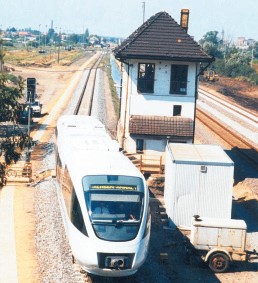 Am 20. August 1996 präsentierte Siemens den neuen Nahverkehrstriebwagen "Talent". Hier ein Blick von der Ritzer Brücke. Er kam jedoch nie wie geplant auf den Nebenstrecken der Altmark zum Einsatz.  Fotos: Bodo Habermann