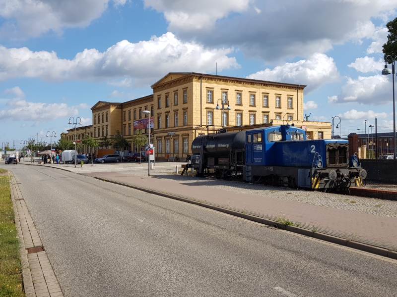 Heute war jedoch nochmal Gelegenheit, die „alte Pracht“ zu bewundern. Die im Erdgeschoss liegende Speisehalle, die einigen unserer Gäste vielleicht noch als Mitropa-Gaststätte in Erinnerung ist, konnte dabei besichtigt werden. Da ein Gleis aus unserem Museumsgelände bis fast vor die Tür des Bahnhofs führt, nutzen wir die Gelegenheit, um auch auf den Historischen Lokschuppen aufmerksam zu machen und boten kurzerhand Führerstandsmitfahrten auf einer unserer Dieselloks an.