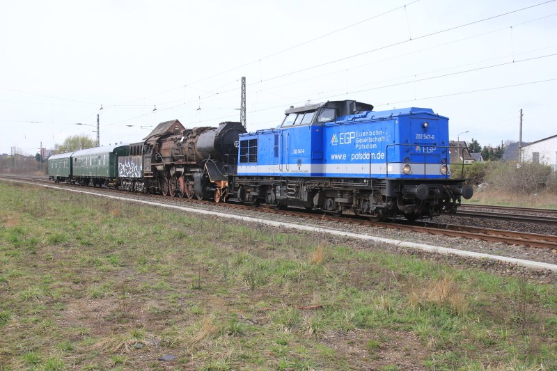 Auch wenn man es ihr im Moment nicht ansieht, so ist ihre Substanz recht gut erhalten und so arbeitet unser Verein demnächst an der musealen Aufarbeitung als Ausstellungsstück in Wittenberge. Aus diesem Grund wurde die Lok am 23.3.2014 von Staßfurt nach Wittenberge überführt. Das folgende Bild zeigt die Überführung in Wolmirstedt.