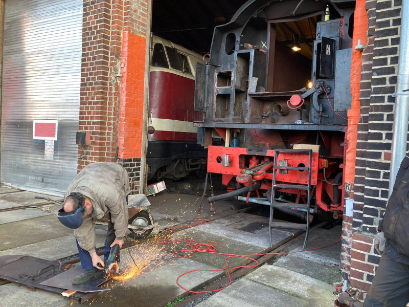 Mit großen Schritten nähert sich die Fertigstellung des Tenders für die Dampflok 50 3570. Noch waren einige Blecharbeiten zu erledigen. Aber auch Rostschutzfarbe konnte aufgetragen werden.