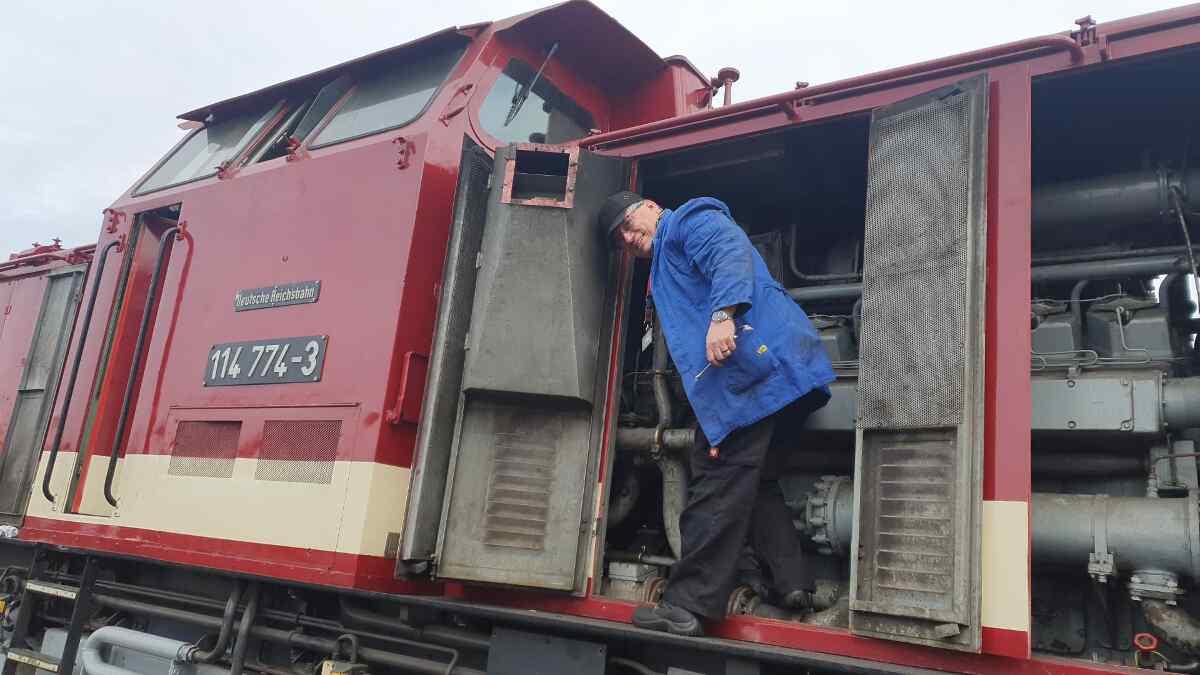 Die Hauptuntersuchung unserer 114 774 steht auch kurz vor dem Abschluss. Hier wurden alle Nebenaggregate kontrolliert und die Batterien geladen, damit der Motor demnächst wieder gestartet werden kann.
