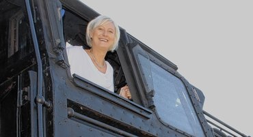 ![]() SPD-Bundestagsabgeordnete Dagmar Ziegler im Lokführerstand. |