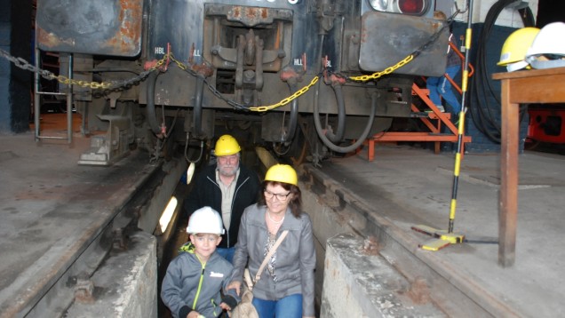 Beim zweiten Dampflokwochenende in diesem Jahr herrschte Helmpflicht. Zumindest wenn man in die Gruben abstieg, um sich die alten Stahlrösser h von unten anzusehen. So auch Familie Schulze aus Wittenberge, die in die Grube unter die 232 500-9 hinabging. „Die bin ich nicht gefahren, aber die 50 3570-4“, erzählt Hans-Joachim Schulze, der selbst von 1973 bis 1978 im Bw Wittenberge Heizer und Beimann war. Die von ihm benannte Lok steht daneben. „Es war eine schöne Zeit“, so der Wittenberger, der mit seiner Frau und seinem Enkel „fast immer kommt, wenn der Lokschuppen öffnet. Unser Enkel interessiert sich für alles, was mit Loks zu tun hat“, so Schulze. Und der siebenjährige Simon verrät, dass er „einmal Lokführer werden will“.