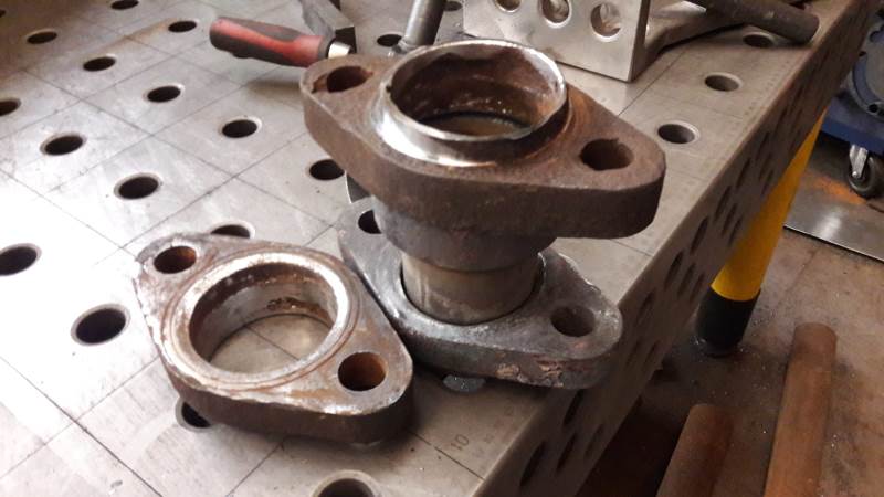 Außerdem werden diverse Rohrleitungen neu angefertigt. Auf den folgenden Bildern sehen wir Arbeiten an den Einströmrohren, also der Verbindung zwischen dem Dampfkessel mit den Antriebszylindern der Maschine.