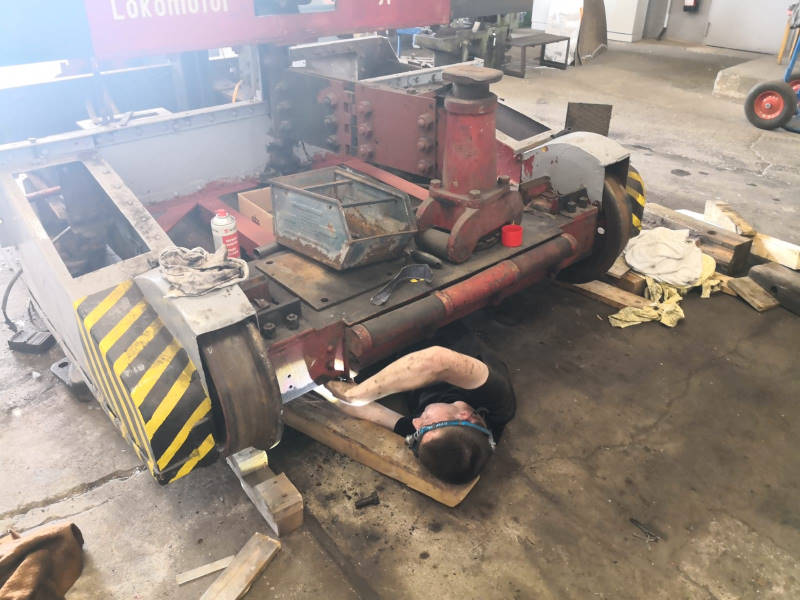 Dann wurde die Lok aus dem Schuppen gezogen und alle Schmierstellen wurden abgeölt
