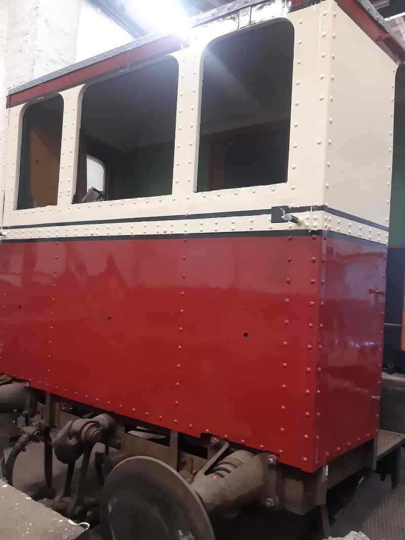 Wir können auch über Fortschritte an unserem Beiwagen 190 851 berichten. Hier konnte die erste Stirnseite neu lackiert werden. An dem spiegelnden Lack kann man bereits erkennen, was für ein Schmuckstück der Wagen werden wird.
