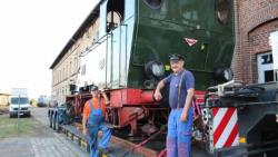 Unsere kleine Dampflok Emma soll wieder der heimliche Star der weltgrößten Messe für Eisenbahntechnik in Berlin werden. Diese Messe beginnt am 20.9. und endet am Sonntag darauf. Während dieser Zeit steht Emma für Führerstandsmitfahrten zur Verfügung. Da die kleine Lok nicht selbst den Weg nach Berlin auf eigener Achse zurücklegen kann, hat die Firma DB Schenker sie auf einen Schwertransporter verladen und zur Messe transportiert.