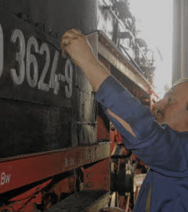 Den letzten Löffel seines Eintopfs schlingt Martin Beelte hinunter. Mittagspause ist vorbei. Schnaubend steht vor ihm die Dampflok der Baureihe 50. Heizer Gernot Gattermann hat noch einmal nachgelegt. Routiniert steigt Beelte die Stufen empor, schwingt sich in den Führerstand.